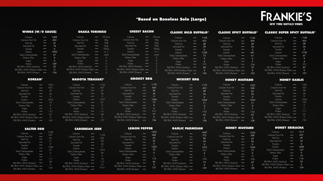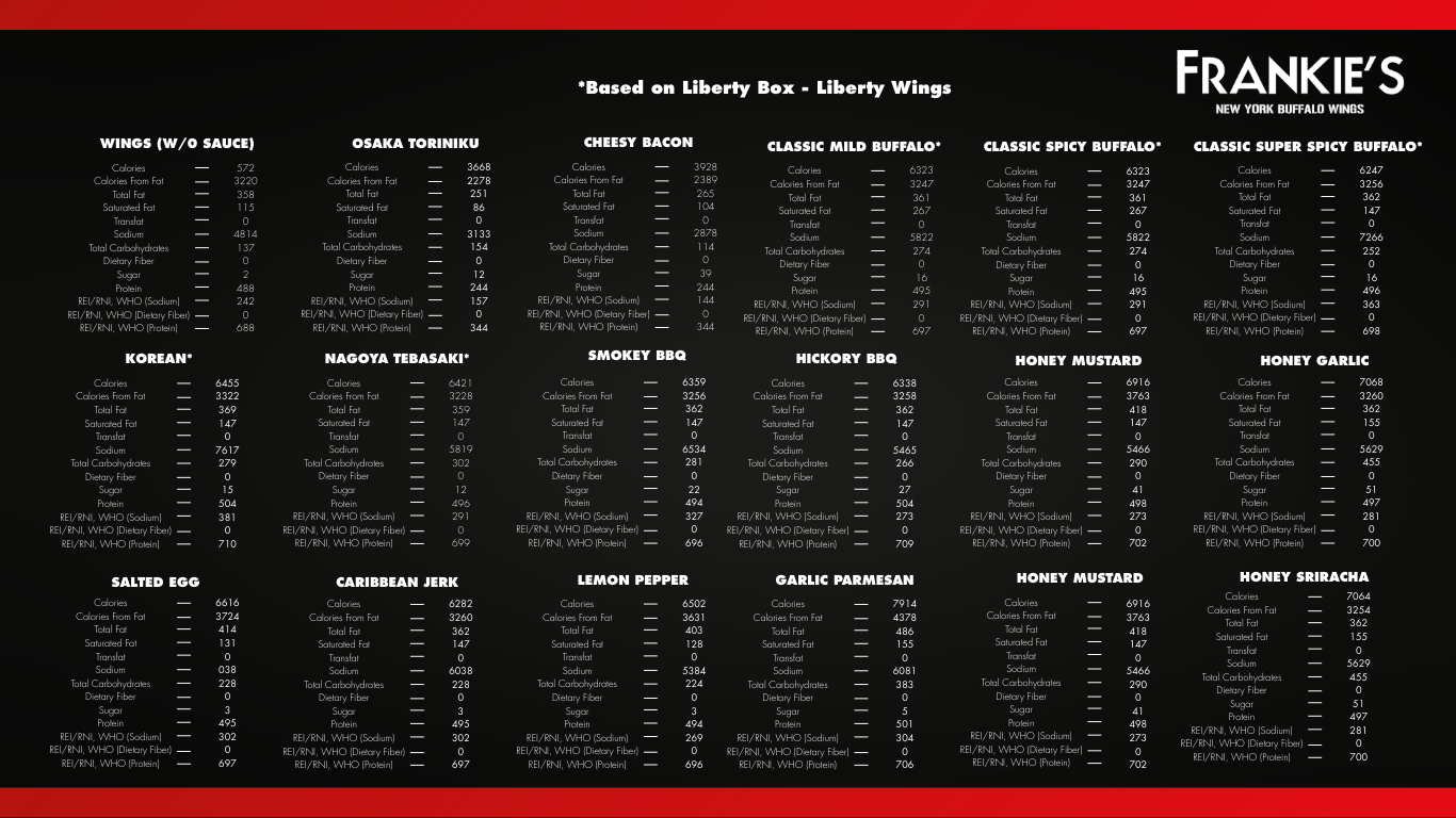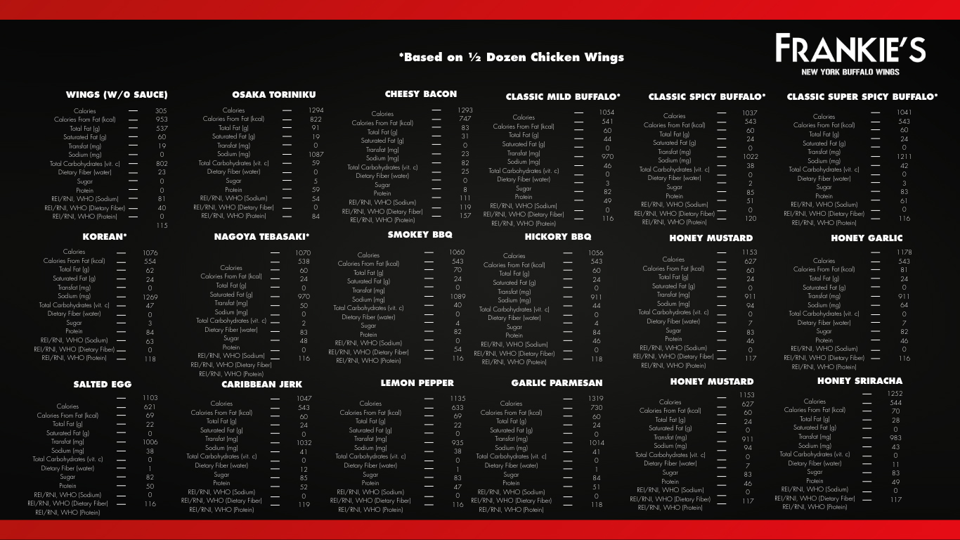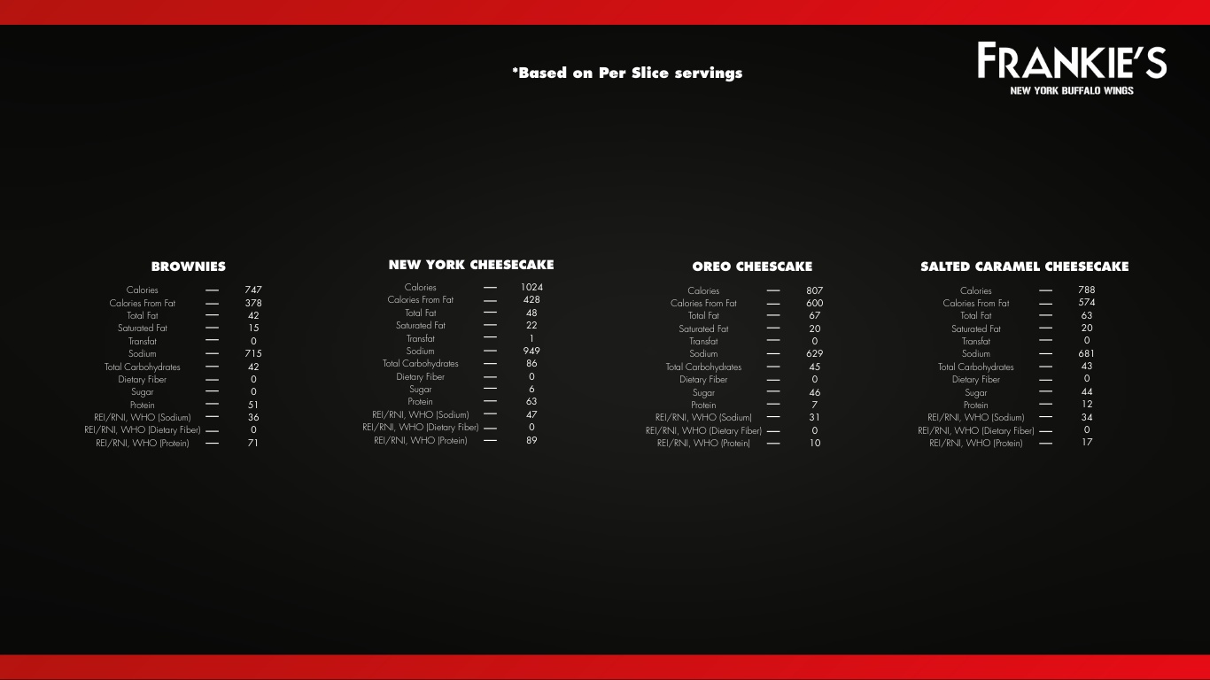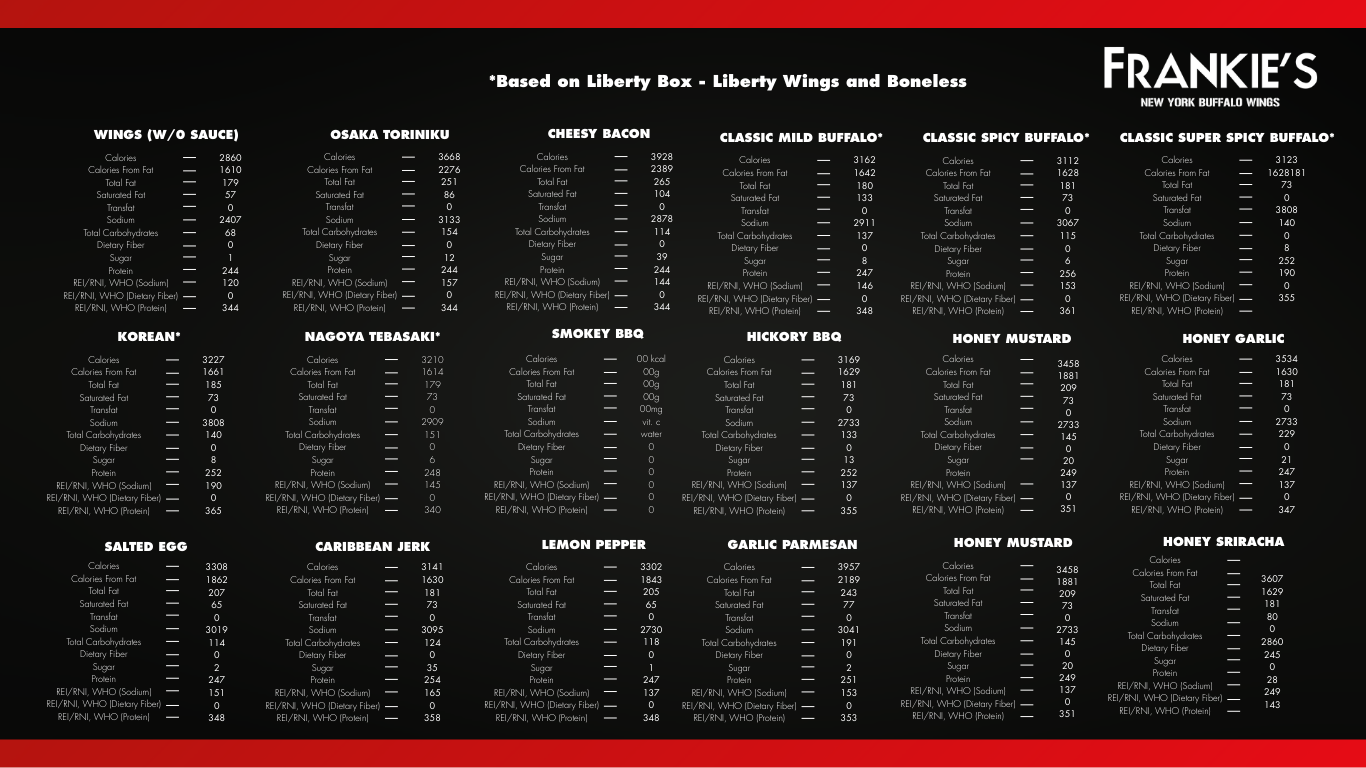 • We are not responsible for any lost, stolen or damaged Frankie’s Reward Card.