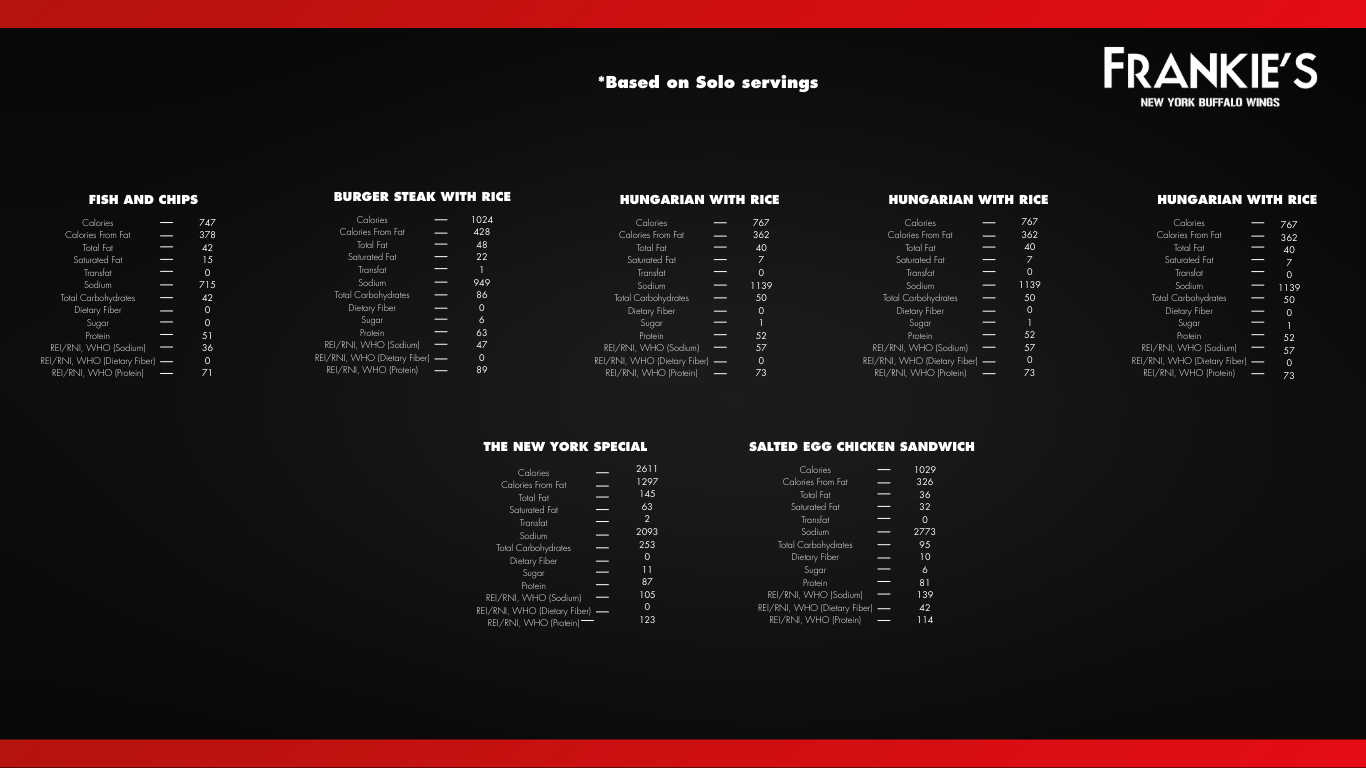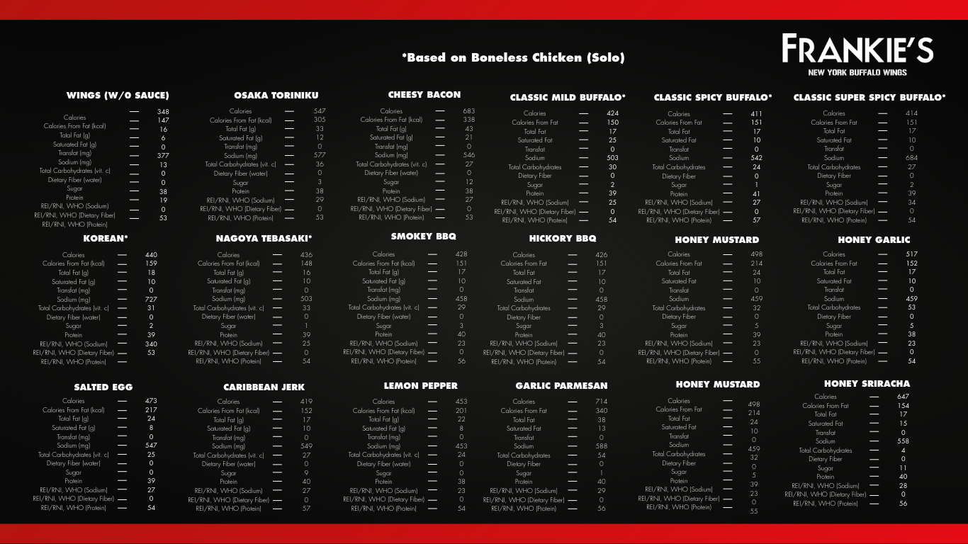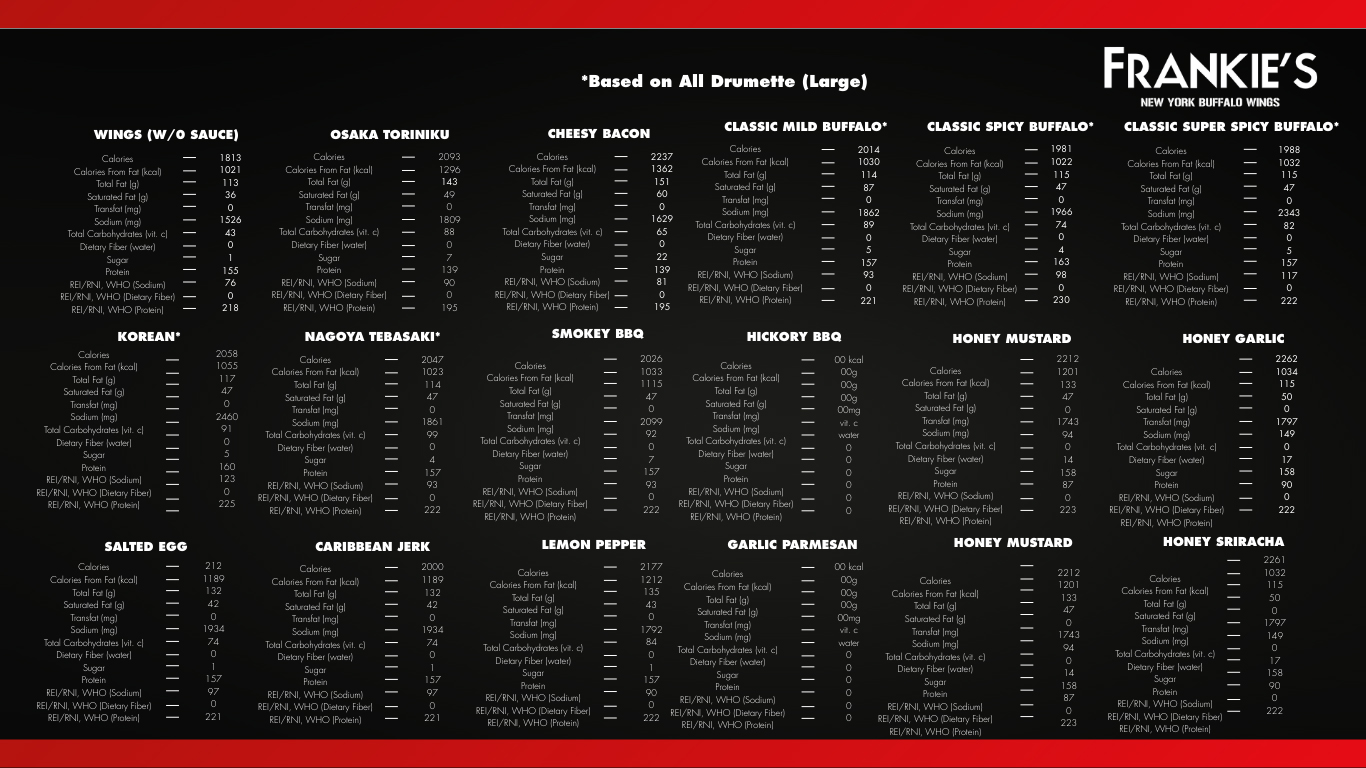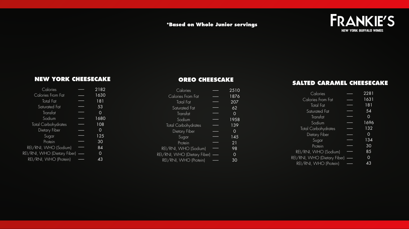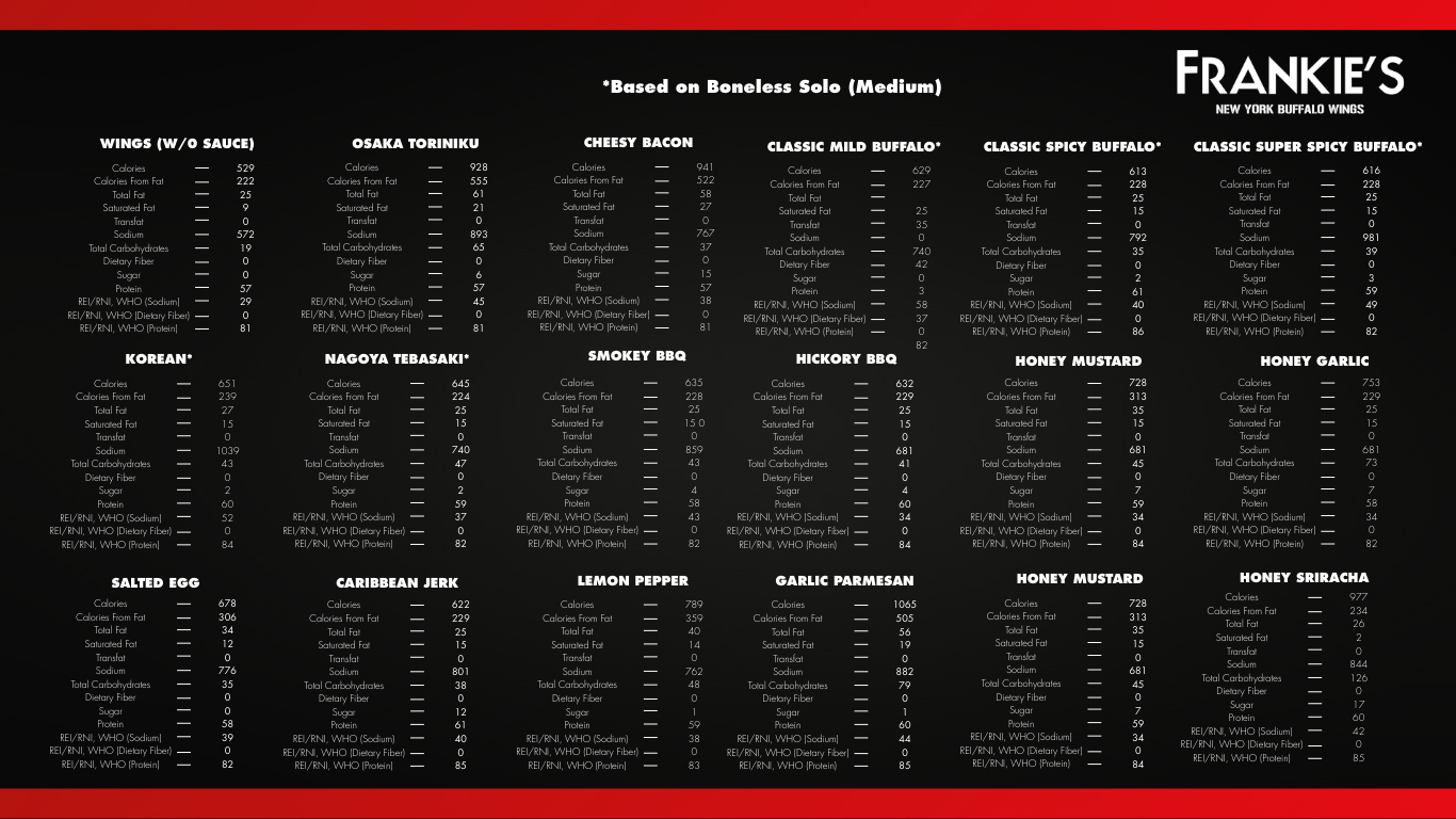 • We are not responsible for any lost, stolen or damaged Frankie’s Reward Card.